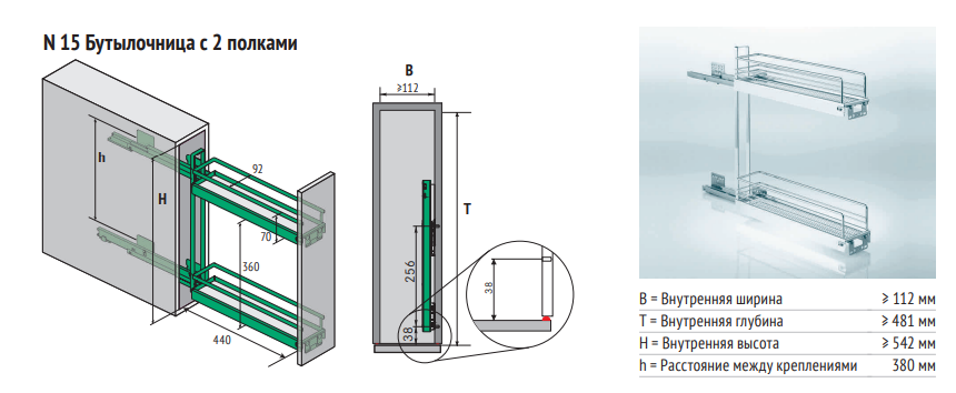 Бутылочница 150 мм 3D с 2 полками Арена КЛАССИК цвет ХРОМ Kessebohmer | официальный магазин