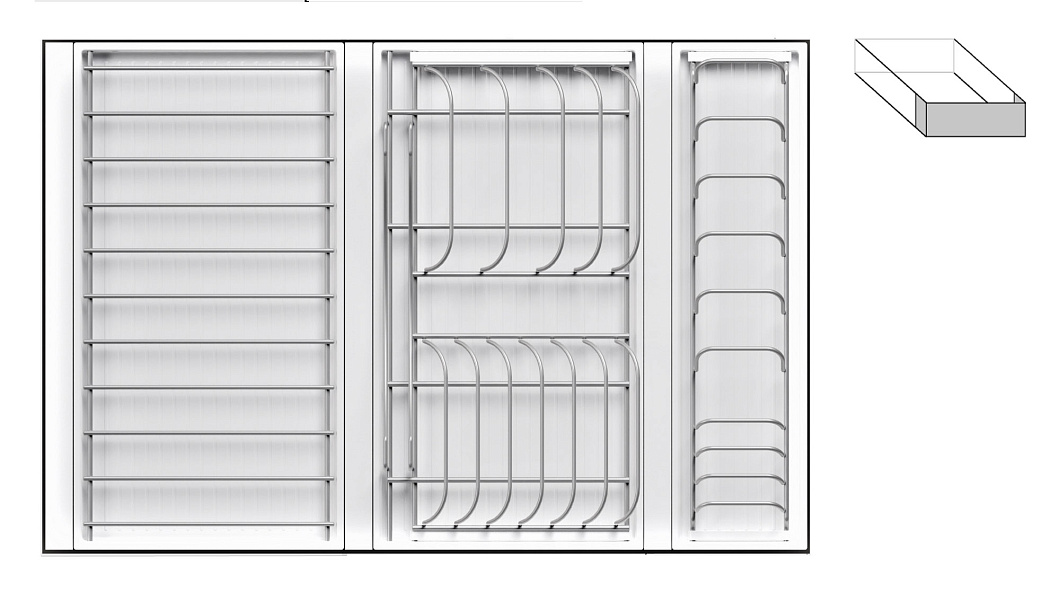 1 для посуды большой (423 x 248 мм, состоит из 1 х держатель металлический, 1 х поддон пластиковый, 2 х защелка-ограничитель)