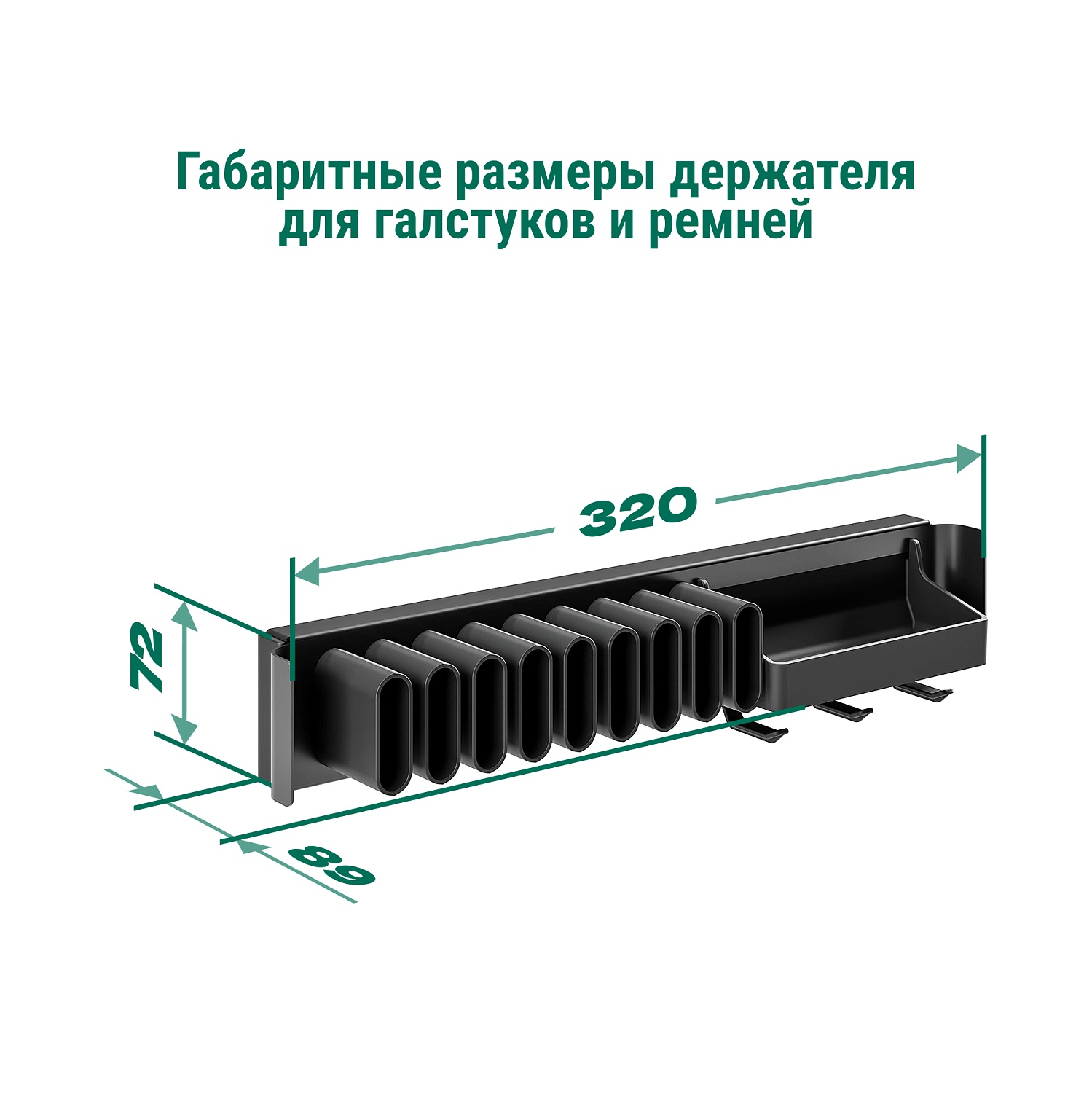 Держатель для галстуков и ремней с полочкой фасадный 320 мм Конеро D 345 мм цвет ЧЕРНЫЙ Kessebohmer | официальный магазин